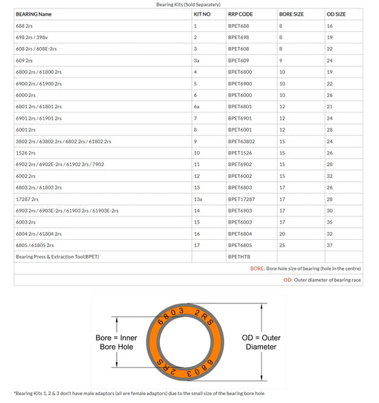 RRP 9 Kit - 3802 2rs/63802 2rs/6802 2rs/61802 2rs