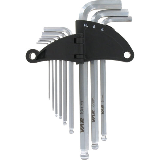 Set van 9 VAR CL-17800 bolkop inbussleutels