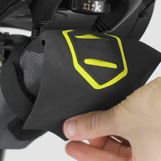 La sacoche dispose d’un compartiment principal capable d’accueillir deux chambres à air, des démonte-pneus, un petit multi-outil et une cartouche CO2. Conçue en Trilon, un tissu trilaminé robuste et étanche, elle protège efficacement son contenu contre les éclaboussures et la poussière. Les coutures sont soudées, assurant une imperméabilité totale et une durabilité accrue.
