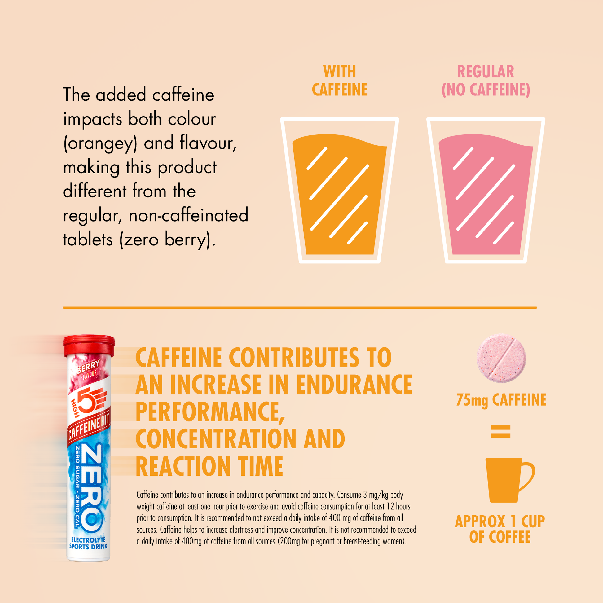 High5 NUL Cafeïne Elektrolytenhydratatie met een mentale oppepper, zonder afbreuk te doen aan lichtheid of prestaties.