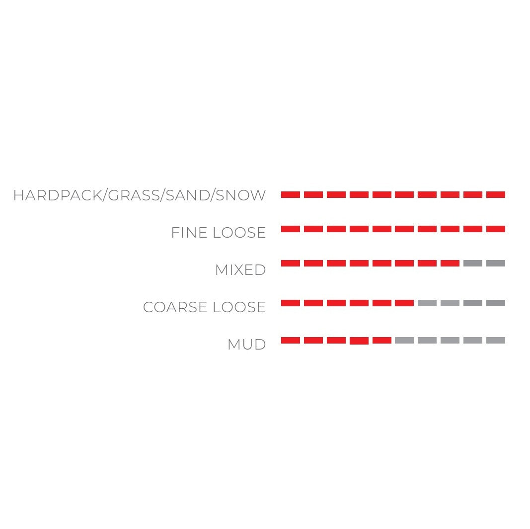 Het karkas van de Flying Doctor (FD) is gemaakt van 87,5% katoen en 12,5% Kevlar. Het is lichter dan het 100% katoenen karkas en beter bestand tegen scherpe randen op de zijwanden. Het karkas blijft stabiel in de meest extreme bochten, zelfs bij lage druk. De neopreenvoering, met een silicabescherming van 0,1 mm, verlengt de levensduur van het karkas door de absorptie van vocht en modder te voorkomen, zonder afbreuk te doen aan de prestaties of het comfort.Dugast's unieke 2C rubber biedt grip en duurzaamheid.