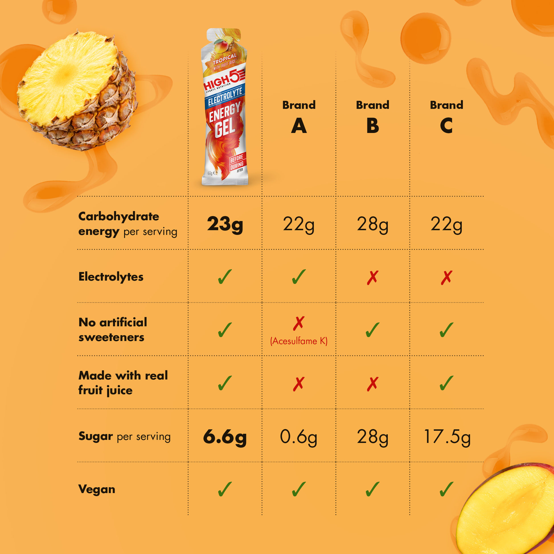 Energiegel HIGH5 ENERGY ELECTROLYTE (60g) Tropical
