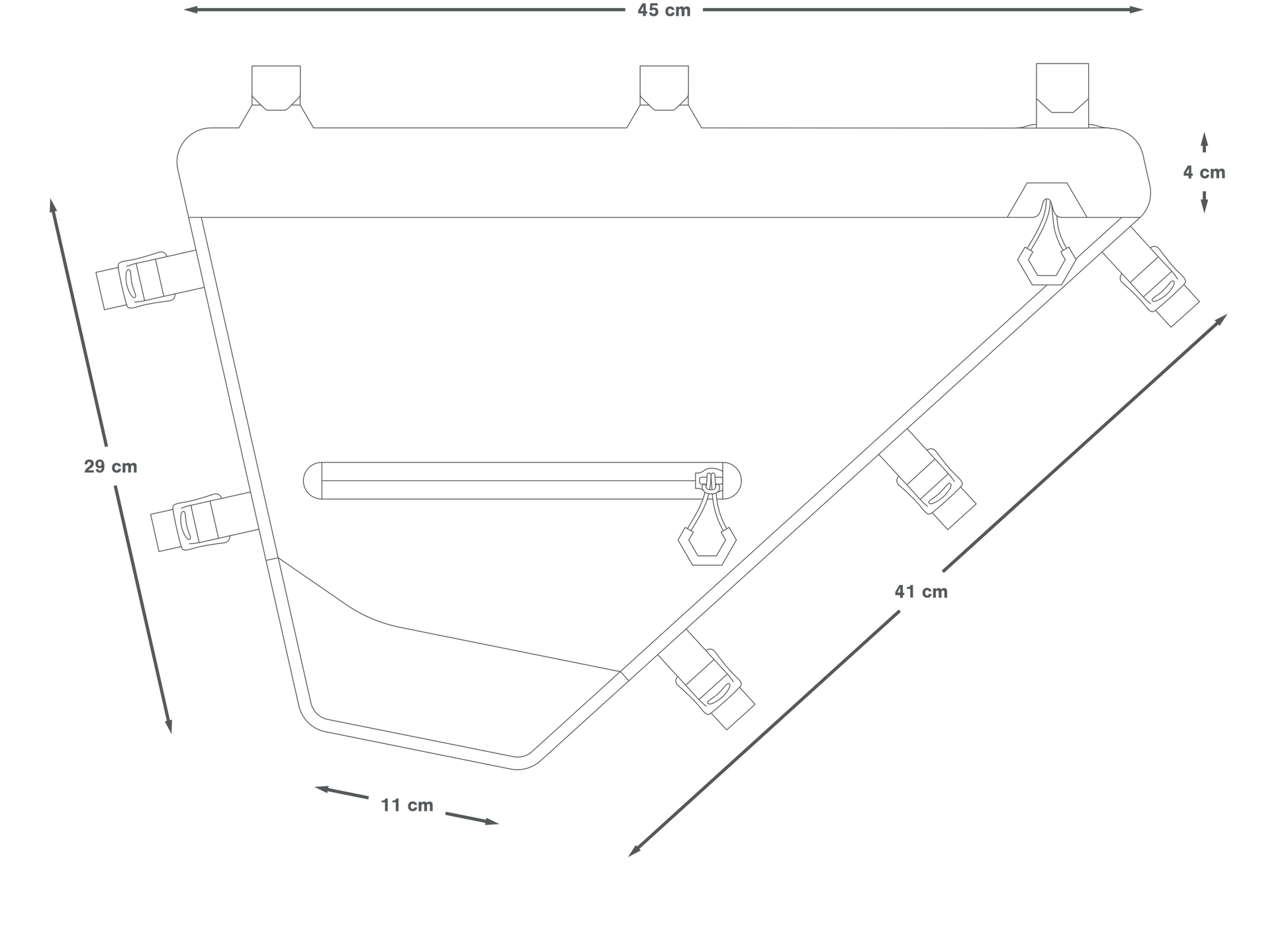 L’installation se fait facilement grâce à des sangles renforcées en Hypalon pour le tube supérieur et des sangles en nylon pour les tubes oblique et de selle. Les fermetures à glissière étanches et les éléments réfléchissants améliorent la praticité et la visibilité, faisant de cette sacoche un équipement essentiel pour le bikepacking longue distance.