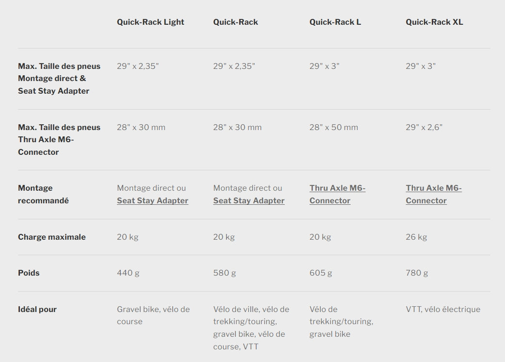 Le Quick-Rack Light est Idéal si vous avez seulement besoin de sacoches latérales et souhaitez un poids aussi faible que possible.