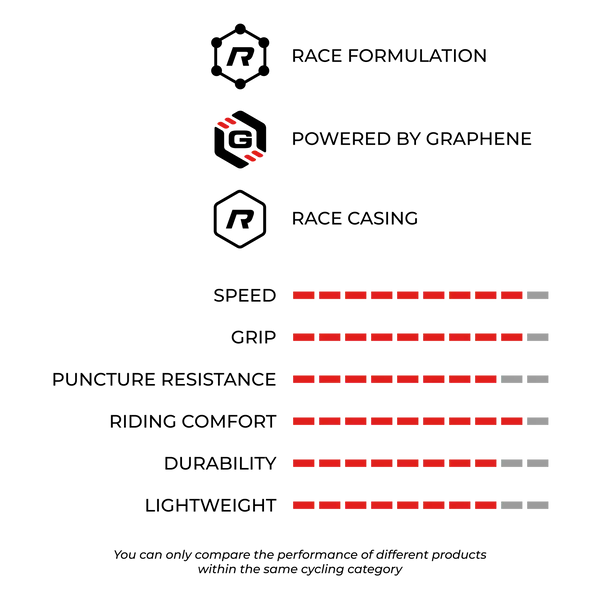 Dankzij de geavanceerde Graphene + Silica Formulaformulering combineert Mezcal grip, snelheid en duurzaamheid. Deze technologie biedt een optimale balans tussen controle op gladde oppervlakken, remprestaties en herstel. Vergeleken met zijn voorganger biedt deze band 20% meer snelheid, 8% meer grip, 44% meer weerstand tegen lekrijden en 9% meer comfort.