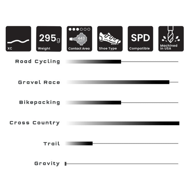 Usinées CNC et assemblées aux États-Unis, ces pédales bénéficient d’une construction robuste avec axe en acier inoxydable, roulements à cartouche à faible friction et étanchéité renforcée. Elles dépassent les normes de sécurité EN/ISO et sont couvertes par une garantie de 5 ans.
