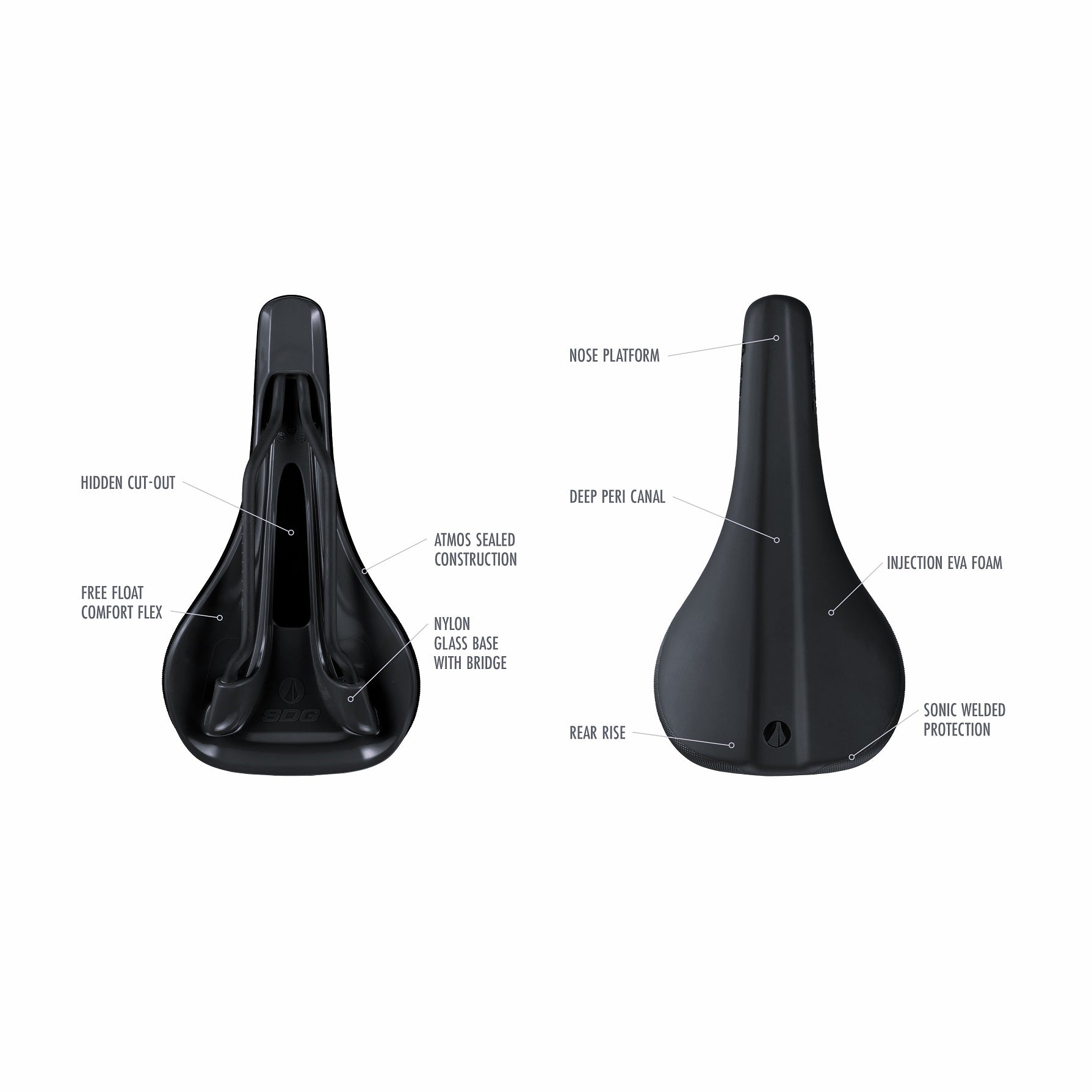 Atmos verzegelde constructie: maakt nietjes en stootranden aan de onderkant van het zadel overbodig;