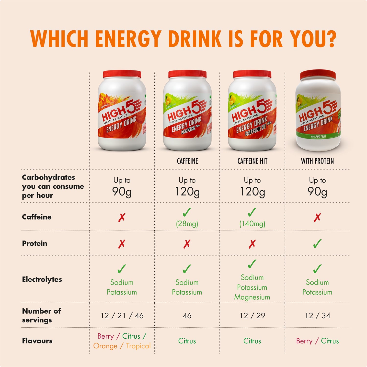 La Boisson Énergétique HIGH5 ENERGY DRINK est une boisson énergétique spécialement conçue pour optimiser votre apport en glucides pendant l’effort d’endurance. Grâce à sa formule 2:1 maltodextrine/fructose, elle permet une absorption accrue des glucides (jusqu’à 90 g/heure), idéale pour maintenir votre énergie et améliorer vos performances.