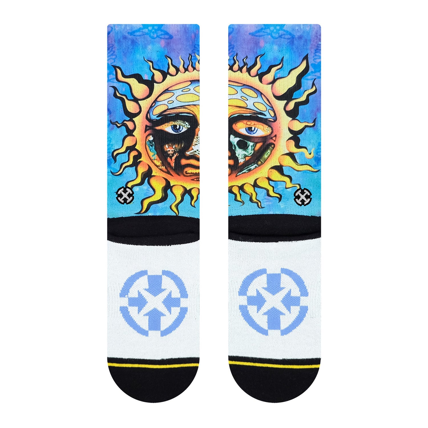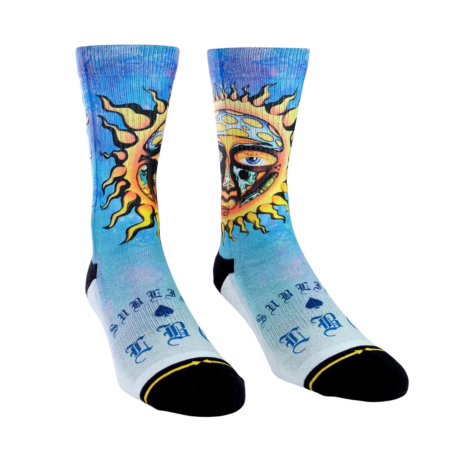 Les chaussettes MERGE4 SUBLIME BLUE SUN ALBUM COVER, illustrées par l’artiste Sublime, allient style et performance avec des designs uniques qui ne passent pas inaperçus. Leur construction sans couture au niveau des orteils et le talon en Y assurent un confort optimal.