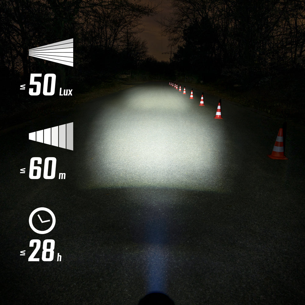 Avec ses 50 lux et une portée de 60 mètres, l'éclairage avant SIGMA AURA 50 est bien plus qu’un simple éclairage : c’est un allié intelligent pour tous tes trajets urbains. Grâce à son capteur de luminosité intégré, il ajuste automatiquement son intensité selon l’environnement, offrant un équilibre parfait entre sécurité, efficacité énergétique et confort de conduite.