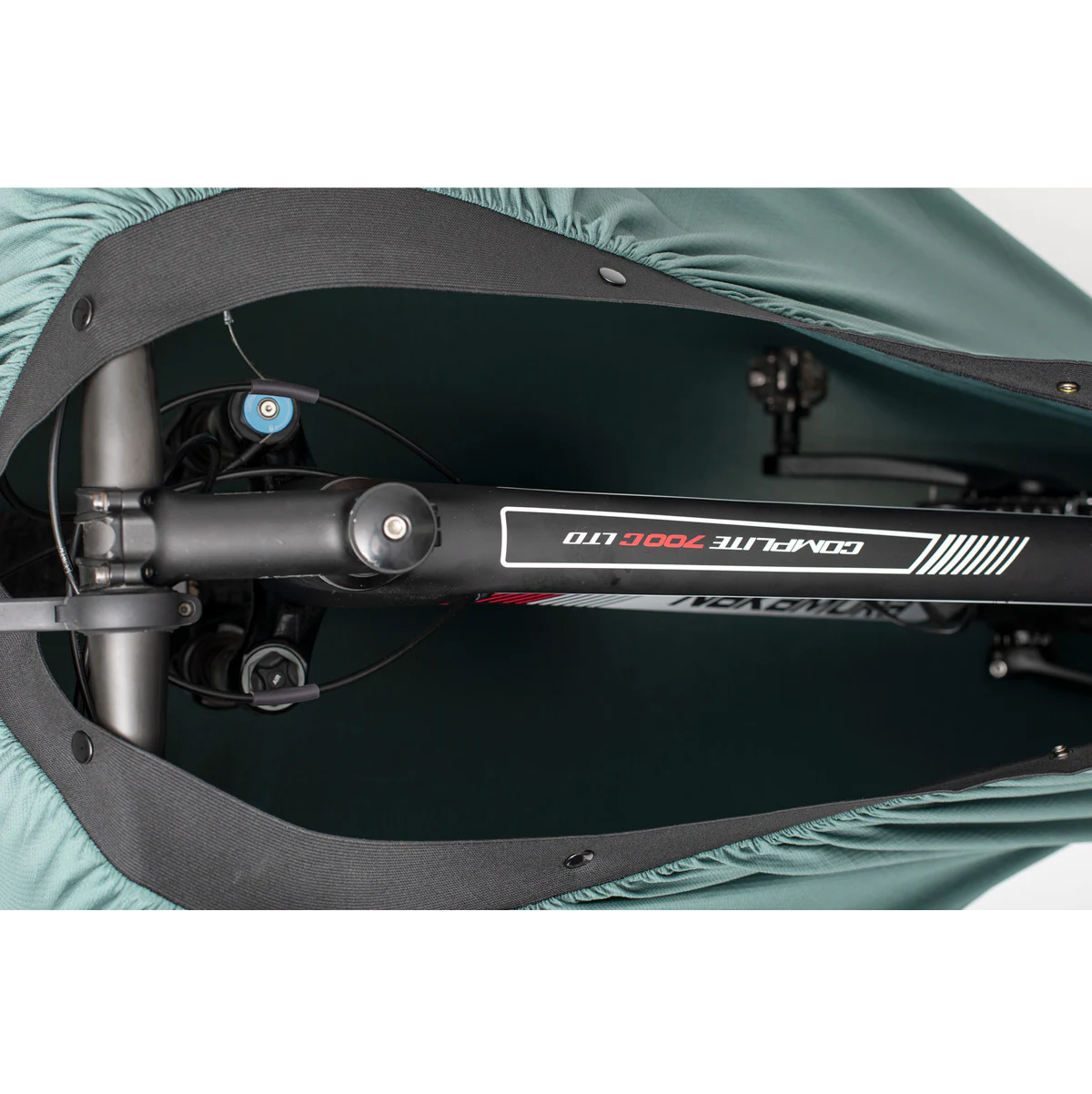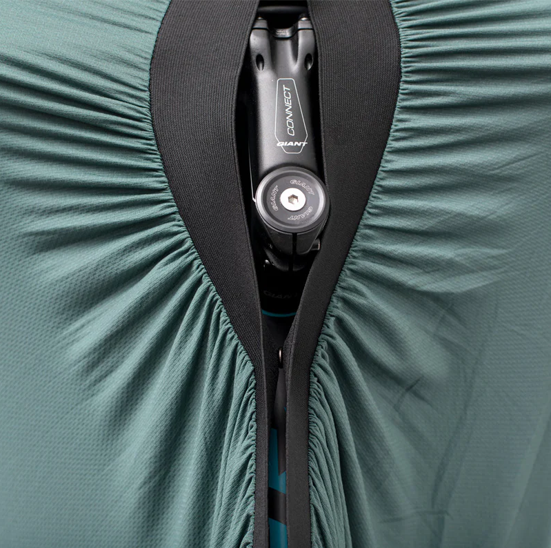 Il suffit d’insérer la roue arrière, de fermer le velcro autour de la tige de selle, puis d’envelopper la roue avant et le guidon. En quelques secondes, votre vélo est protégé — et votre intérieur aussi. Pratique, simple, efficace.