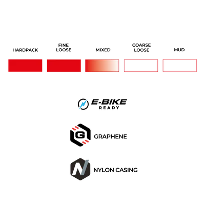 Sa carcasse Trail allie légèreté et robustesse grâce à une construction tubeless ready en nylon 60 TPI, renforcée par une protection latérale et une ceinture anti-crevaison. Associée à la technologie 4Compound enrichie en Graphène, elle assure un compromis optimal entre vitesse, grip et durabilité, pour un pneu prêt à affronter tous les défis du trail